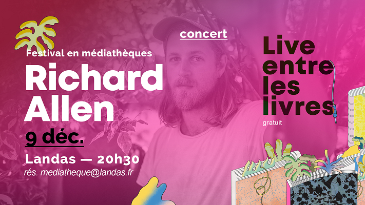 Ce concert de GUITARE FOLK vous est proposé par l’association Dynamo, dans le cadre du festival LIVE ENTRE LES LIVRES – NORD (concerts, ateliers, rencontres, formes originales et une création exclusive en médiathèques). Né à la fin des 80s dans le comté rural de Warwickshire dans le centre de l’Angleterre, Richard Allen y vit ses quatre premières années avant de traverser la Manche et de s’installer en France. La musique de l’anglo-français tire une originalité qui doit tant à cette double culture. D’un côté, il s’inscrit dans cette tradition du Revival Folk des 70s, de l’autre, il puise dans le répertoire d’une école impressionniste ; un contrepoint parfait à cet ensemble, y incluant une belle part d’abstraction comme un folk qui se refuserait à une ligne claire.