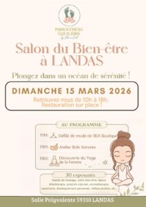 Plongez dans un océan de sérénité! 30 exposants Au programme 11h : Défilé de mode de Béa Boutique 15h : Atelier bols sonores 16h : Découverte du yoga de la femme